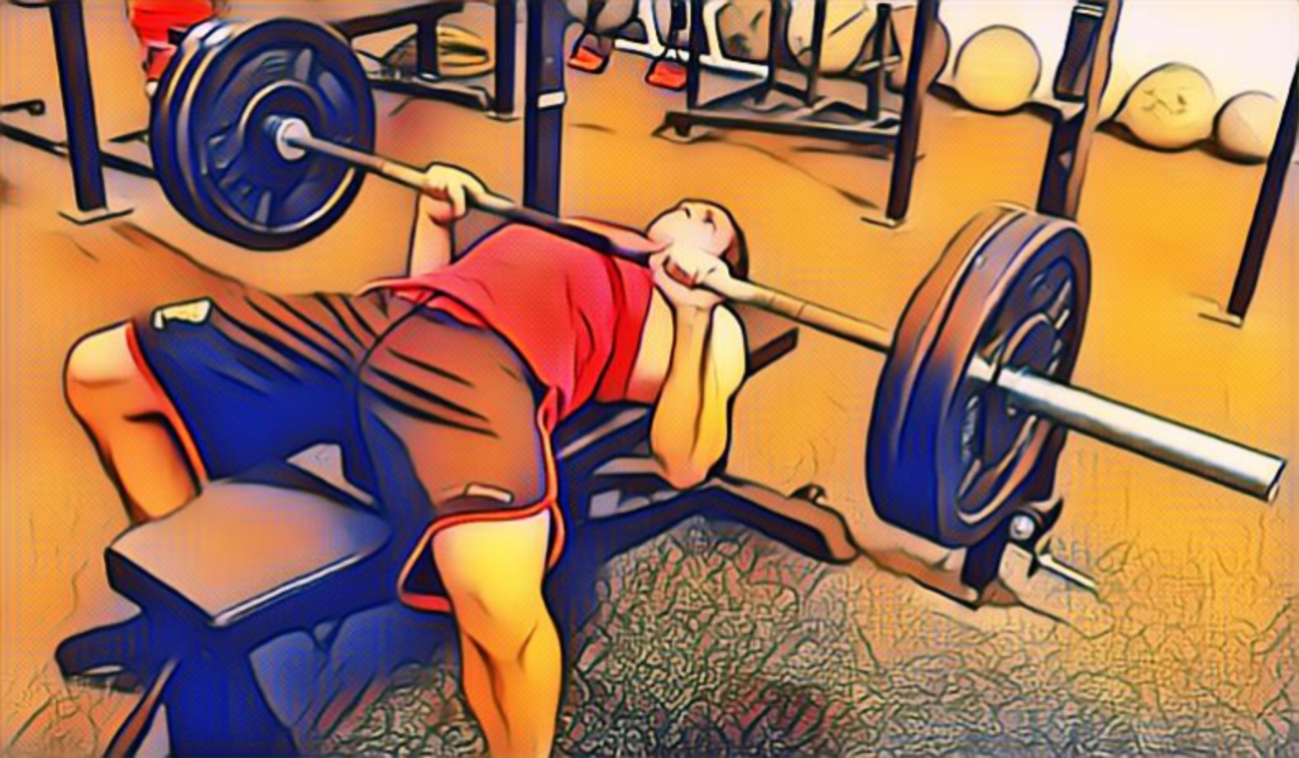 Lie flat on a flat bench with feet firmly planted on the floor. Take hold of the barbell with the grip less than shoulder-width apart but comfortable for your wrists.